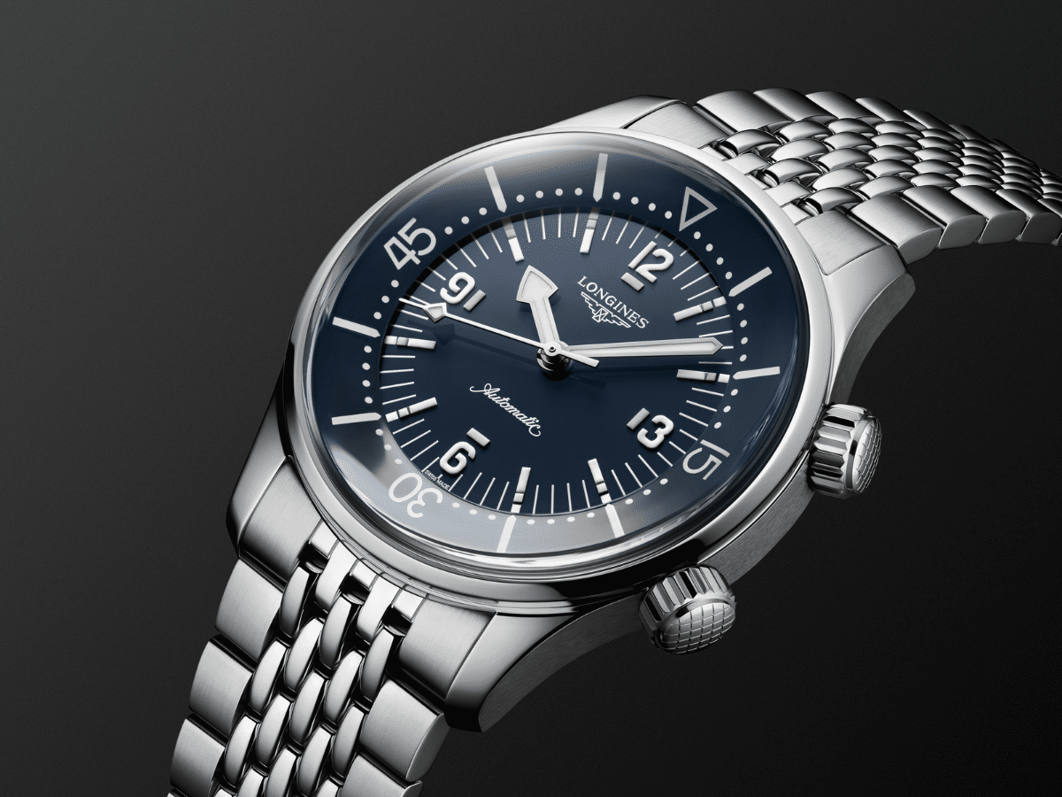 A stainless-steel case boasting alternating polished and satin-brushed surfaces and the collection’s diver symbol stamped on its screw-down case back deliver the finishing touches to this stunning new incarnation of the Longines Legend Diver. Paired with one of three straps—brown leather, blue NATO, or a stainless-steel bracelet with a double-safety folding clasp—it’s the ultimate watch for those who can’t resist the ocean’s call to adventure.