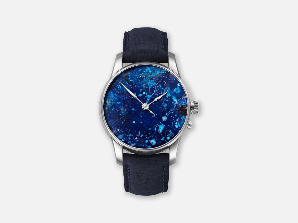 Available in 16 piece unique watches, each Moritz Grossmann Art Edition Max Frintrop model features a dial made from fragments from the floor of the artist’s studio. Available in either stainless steel or rose gold, the Moritz Grossmann Art Edition Max Frintrop boasts a random, abstract piece of artwork on the dial.